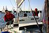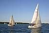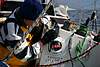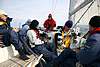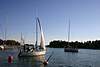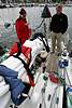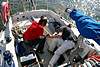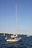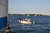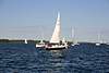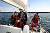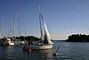 | Solmuja | Espoo-Suursaari -Race 2005 Elämäni ensimmäinen avomeripurjehdus alkoi heti kilpailulla. Tuttuni pyysi lyhyellä varoitusajalla mukaan purjehtimaan ystävänsä veneeseen. Olin täysin noviisi muihin mukana olleisiin verrattuna. Mutta perille päästiin mukanaolostani huolimatta. Matka tehtiin pelkän pc:n ja gps:n avulla.Merikortteja ei ollut mukana. Samaan aikaan ympärillä: yksi purjevene sai spinnunsa etustaagin ympärille ja toinen broachaili mallikkaasti edessämme. Niitä sitten hieman huvittuneina seuraillessa hymy hyytyi pian kun spinnustamme kuului terävä repeämän ääni. Ei kun spinua alasrepimään josta lopulta vain reunat jäljellä. Ulompana etelässä näytti olevan yksi vene masto kannellaan. Jälkeenpäin kuulin, että kisassa oli katkennut neljä mastoa, useampi spinnu hajonnut, yksi peräsin hajonnut, moni vene keskeyttänyt eri syistä. Kone toimi hyvin ja olimme lähdössä matkaan kun naapuriveneestä pyydettiin hinausapua. Heidän moottorinsa ei myöskään käynnistynyt. Otimme veneen hinaukseen ja tovin päästä oma moottorimme alkoi savuttaa ja piipittää. Hinaus loppui osaltamme siihen, ja hinattava nosti purjeet ja suuntasi kotiin. Me käänsimme kohti laituria takaisin. Kun lähestyimme rantaa löysimme sen ainoan kiven joka oli laiturin eteläpäässä. Siitä selvittiin kiskomalla poijuköydestä vene takaisin ulommaksi ja moottoria huudattaen seuraavaan poijuun. Urakoimme moottorin kanssa tovin ja lähdimme koettamaan matkantekoa uudelleen. Pääsimme jonkin matkan päähän satamasta kun kone taas alkoi savuttamaan ja piipittämään. Siinä vaiheessa tuuli vielä hieman ja saimme purjeilla vauhtia veneeseen. Tuuli kuitenkin tyyntyi melko pian ja pyysimme / saimme hinausapua veneeltä jonka moottori meinasi myös laueta kun meidän vene oli niin raskas.. eli hinaus loppui siihen. Siinä sitten lilluttiin ja koitettiin korjata moottoria. Purimme ja kasasimme vesipumppua minkä ehdimme, kokeilimme erilaisia lappoja ja saimme lopulta viritettyä jäähdytysvedelle syöttötavan kun saimmekin hinausapua perille saakka. Käytännössä moottorin ongelmana oli tukos veden sisääntulossa ennen vesipumppua. Lauttasaaressa olimme HSK:n laiturissa lopulta kolmen jälkeen. Onneksi omalla veneellä ei ihan noin rankkoja keikkoja avomerelle varsinkaan kisaviikonlopun kaltaisissa tuulissa ja sateissa tule toistaiseksi harkittua. Kokemusta tuli kyllä rutkasti lisää. Tässä kuvasatoa purjehduksesta.