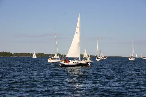 Purjeita nostettiin ja etsittiin omaa paikkaa ensimmäisten lähtijöiden joukossa. Tässä HSK:n Vindungen.