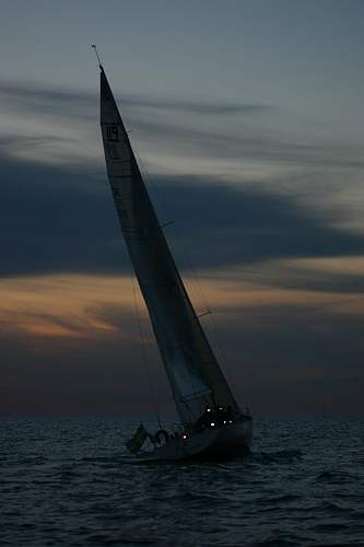 Aurinko alkoi hiljalleen nousta. Kalbådagrundin ohitimme kolmen aikaan aamuyöstä - ja sitten jäimme aika pitkäksi aikaa näköetäisyydelle siitä. Siinä kryssiessä isompia veneitä kulki liki kohti horisonttia.