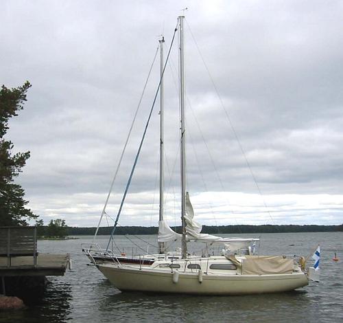 | Kaikki muu paitsi purjeveneen kunnostus on turhaa... Favola Kotiluodon laiturissa, ehdin käydä pariinkin kertaan tässä Helsingin Navigoijien "kotisaaressa" Itä-Helsingin vesillä ennen veneen nostoa kesällä 2003.