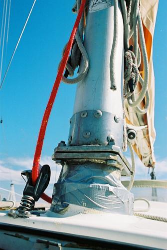 | Kaikki muu paitsi purjeveneen kunnostus on turhaa... Veneeni on ollut aikanaan Päijänteellä, jossa olevien siltojen vuoksi mastoon oli viritetty kaatojärjestelmä. Ohlsonissa on läpimasto joka oli katkaistu ja siihen oli tehty sarana (maston takana ja edessä kahdella pultilla kiinni). Maston irroitus vaati hieman tekniikkaa ja varovaisuuttakin - maston valojen sähköjohdot olivat kuulemma liitetty tuosta kohtaa yhteen. Liitos piti avata nostettaessa ja maston tynkään jäävä osa piti saada kiinnitettyä niin, ettei se pudonnut maston sisään.
