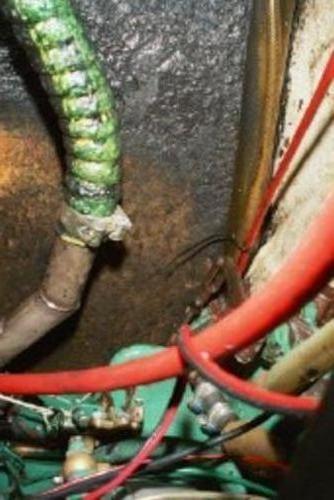 Tässä näkyy aika hyvin moottoritilan eristeen pinta joka oli kauttaaltaan öljyn ja pakokaasun seoksen peittämä. Eristelevy irtosi yllättävän helposti metallilastalla ja repimällä.