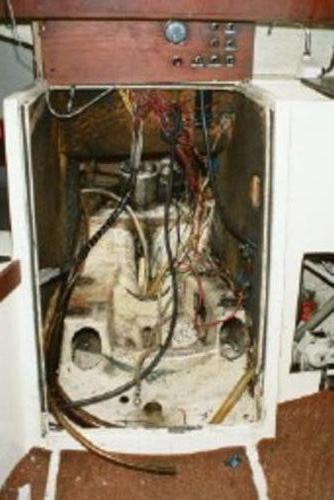 Lokakuun puolivälissä vanha Volvon kone oli haettu Tekno Marinen toimesta pois. Tässä vaiheessa urakka näytti ihan kohtuulliselle - edessä öljyisten eristeiden poisto, moottoritilanpesu ja uusien eristeiden liimaus sekä vanhan vedenerottimen irroitus pakoputken päästä.