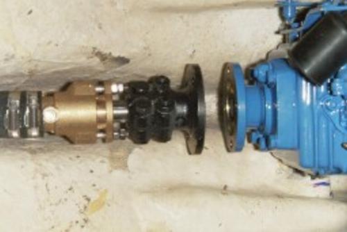 Uusi akseli vielä kiinnittämättä vaihdelaatikkoon. Haasteena tulee olemaan vaihdelaatikon öljynvaihto. Öljynpoiston pitäisi ohjeiden mukaan tapahtua akselin alapuolella olevasta poistoaukosta johon ei pääse käytännössä käsiksi vaikka akseli ei olisikaan kiinni koneessa.