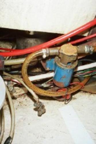 Sähköllä toimiva pilssipumppu on aika hakatun näköinen, mutta toimii ihan hyvin toistaiseksi. Käytänössä pumppu ei riitä yksin ja siihen johtava pilssintyhjennysletku tulee vain moottoritilasta. Kölin päällä olevasta pilssistä ei toistaiseksi ole pilssipumpusta minkäänlaista yhteyttä. Letku kölipilssiin kyllä on viety, mutta sen letkun pää on tyhjänä sitlooran muiden letkujen ja johtojen seassa.