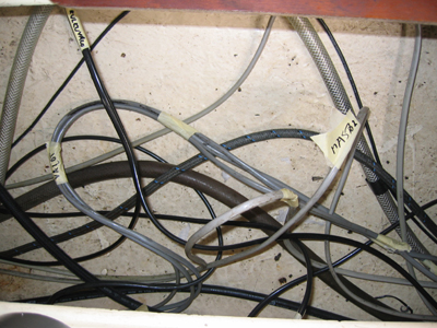 Johtoja lisää... ennen värikoodeja kävin kaikki kaapeloinnit läpi ja kirjoitin kuhunkin johtoon, mihin sen piti virtaa kuljettaa. Aikamoinen kartoitus kaikkinensa.