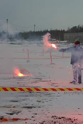 Kannattaa pitää käsisoihtua käsi suorana ja hieman yläviistoon itsestä poispäin.