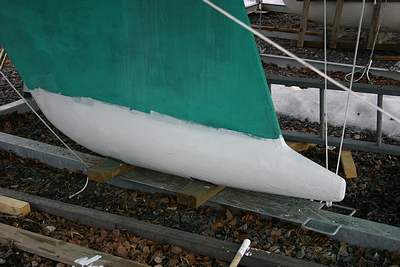 Oviprojektin lisäksi hioin ja paklasin kölissä olleet ruosteet pois. Tässä muutamaan kertaan primerillä maalattuna jo.