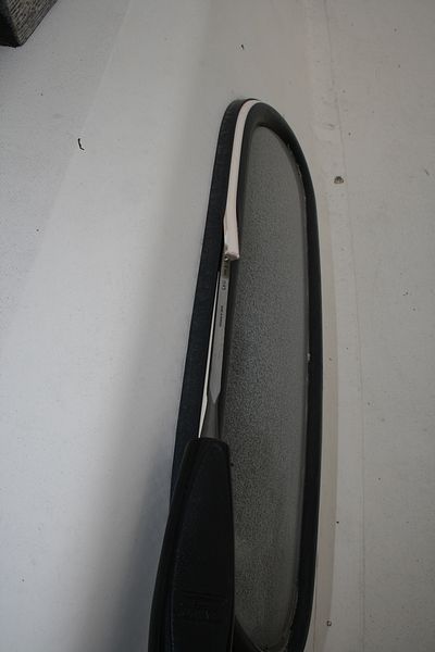 Veneen ikkunaremontti, kunnostuskohteita, osa 5 Otin kiilakumin irroitukseen avuksi kapean taltan ja totesin hyvin nopeasti huoleni kumin kovettumisesta turhaksi. Valkoinen kiilakumi oli tosin haperoitunut ja kovettunutkin hieman, mutta silti aika joustavaa edelleen..