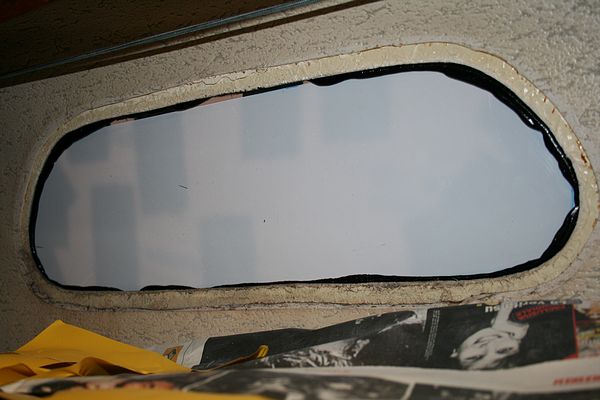 Kiinnityksen jälkeen myös sisäpuolella näkyi hieman pursunnutta Sikaa - ikkunan alapuolen suojasin sanomalehdillä remontin ajaksi. Vanhojen kehyksien jälkeen pitää vielä miettiä uudet kehykset - sikan sai siististi veitsellä irti sen kuivuttua muutaman päivän.