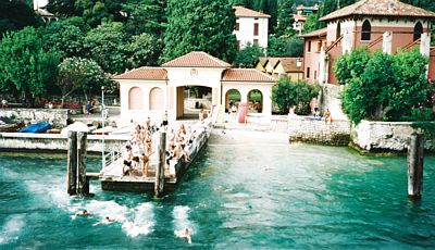 Lago di Garda Lauttamatkaa jälleen... Kun matkustajalautat tulevat satamaan, pikkupojat vilkastuvat. He kerääntyvät laiturille ja kun lautta lähtee loikkivat kilvan järveen päästäkseen potkurien aiheuttamien virtausten ja aaltojen sekaan..