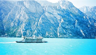 Lago di Garda Kuvassa olevan kaltainen autolautta kulkee Gardan päästä päähän kolmessa tunnissa. Kattoterassille on melkein juoksukilpailu satamissa ja paikat ovat aika kiven takana. Vaan italialaiset ovat aika arkoja pilville ja pienellekin sateelle ja siirtyvät oitis sisätiloihin - silloin saa hieman enemmän tilaa itselleenkin. Lauttoja käyttävät turistit suhteellisen vähän, suurin osa matkaajista on italialaisia.