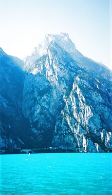 Lago di Garda Läntisen rannan jylhiä vuoria ja jos katsot tarkkaan, näet aivan vesirajassa tien joka sukeltaa vuoreen louhitusta tunnelista toviksi ulkoilmaan. Aikamoinen urakka arvatenkin aikanaan louhia tie. Ja kun miettii, miten ennen tietä paikalliset liikkuivat kyliin jotka ovat Gardan läntisellä rannalla.