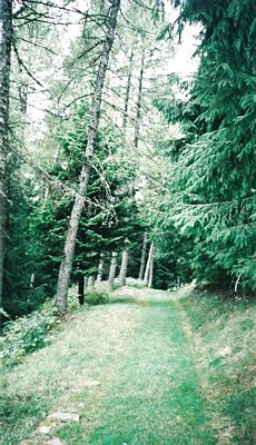 Malcesinesta Tredes Pin:ille metsäreittiä. Mukava hämyinen polku kasvaa välillä liki tieksi.