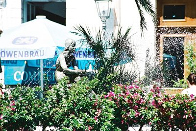 Rivan kaupungin yksi suihkulähde pusikoiden siimeksessä.