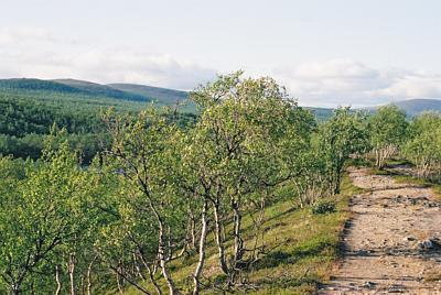 Polun pohja oli aika kulunut - maasto oli suhteellisen helppoa, ylämäkiä, alamäkiä toki, mutta hyvin pitkälti kuin hiekkapohjaista polkua. Ajoittain tuota hiekkaa oli aika paljonkin reitin Karigasniemen puoleisessa päässä.