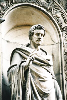 | Milano Viale Dantella sijaitsee melko lähellä Gallerian päätä katettu torintapainen jolla tosin koskaan täällä käydessäni ole nähnyt ensimmäistäkään myyntikojua. Vastapäätä tätä rakennusta on kuvassa oleva reliefi, kuin vahtimassa ja ojentamassa kauppiaita tekemään vilpitöntä kauppaa.
