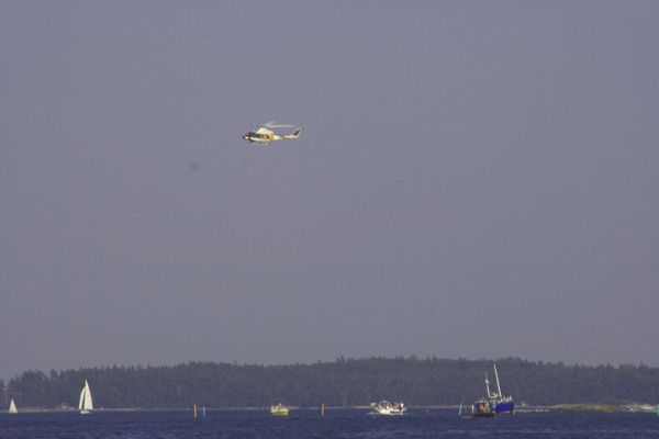 Purjehduskuvia kesältä 2007 Leikosaarten luokse ehdittyämme paikalle saapui rajavartioston helikopteri ja pian paikalle kiihdytti myös meripelastuksen kumivene vahinkoja arvioimaan. Turha kiire taisi kostautua aika ikävällä tavalla.