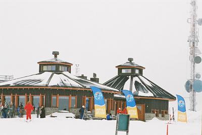Kaunispään huipulla on ravintola ja matkamuistomyymälä. Huipulla tuulee....