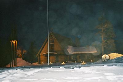 Kahtena vuonna peräkkäin majoituin Lapin Kutsu Oy:n rivitaloihin Siulanrinteellä. Mukavan etäisyyden päässä Saariselän keskustasta (n. 1 km) ja erinomaisesti hiihtoladun vieressä Kaunispään etelärinteessä. Matkalla Saariselän keskustaan ohittaa tie Saariselän kappelin joka on kuvassa iltavalaistuksessaan pienessä lumisateessa.