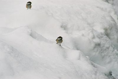 Lintuja näkyi talvisessa metsässä melko vähän, yleisimmin tiaisia, kuukkeleita, harakoita tai korppeja.