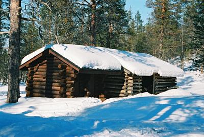 Vellinsärpimäojan ulkohuone ja halkovaja.