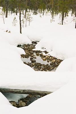 Vellinsärpimäoja, latu kulkee tuosta yli sulan puron.