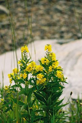 Keltaisia rantakukkia Kasnäsissä.