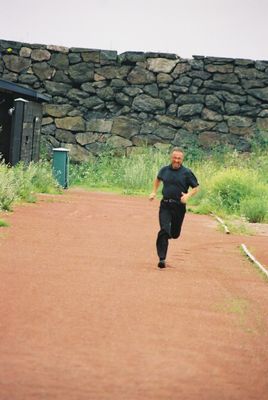 Kesän 2004 purjehduskuvia Ilmeisesti miehistö oli saanut melko liukasta ruokaa, sillä välillä piti sännätä juoksuun urakalla.. No ehkä Markkua innosti päästä pitkästä aikaa lenkille, olihan HCM jo muutaman viikon päästä.