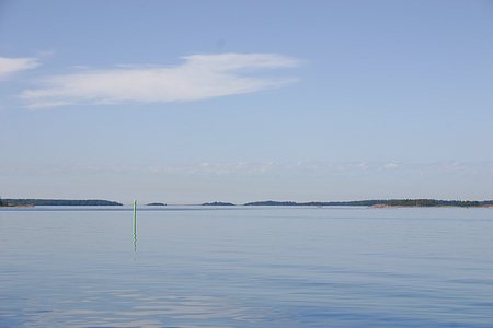 Koneella ajaen matka joutui - tässä Suomenohjan kohdalla - tässä vaiheessa muita veneitä ei kosolti näkynyt, vaikka lähtö oli tapahtunut vasta yhdeksän aikaan Suomenlinnasta.