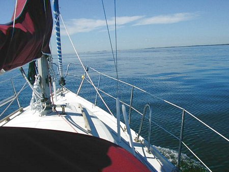 Uuden sprayhoodin yli meri heijasti taivaan sinen liki peilityynellä pinnallaan. Aika muikea loman aloitus.