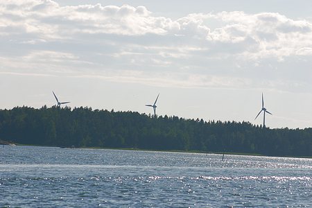 Kesän 2005 purjehduskuvia Inkoon tuulivoimalat. Nämä eivät yhtä suvea pidempään ehtineet paikoillaan olla. Kesämökkiläisten painostuksesta tuulimyllyt purettiin lokakuussa 2005 ja niille etsitään myöhemmin uusi sijoituspaikka.