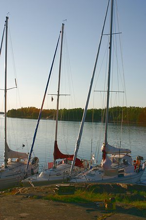 Veneitä alkoi tulla hissukseen enemmänkin. Osa vain pistäytyi saunomassa ja jatkoi yötä vasten eteenpäin vielä rauhallisempaan rantaan.