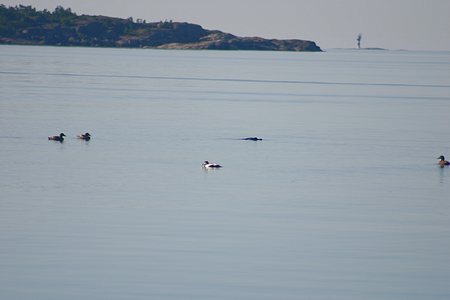 Kesän 2005 purjehduskuvia Harvinainen näky heinäkuussa Suomenlahden rannikolla - uroshaahkat säntäävät yleensä heti paritteluajan jälkeen kohti etelää ja avomerta jättäen naaraat yksin hoitamaan pesiä ja jälkeläisiä.