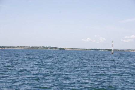 Nyt jo kokka kohti Trunsön satamaa aika matalarantaisten kahden luodon välistä, reitti vie tuonne vasemmalle ulos tästä kuvasta.