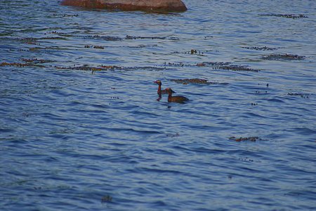 Aamulla ennen lähtöä Trunsöltä kohti Aspötä, kävivät mustakurkku-uikut tervehtimässä vielä laiturin lähellä meitä.