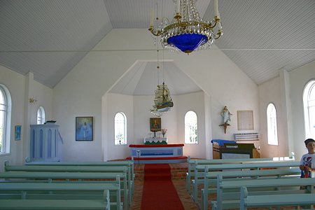 Aspön kirkko paloi joitakin vuosia sitten - se rakennettiin talkootyönä entisen näköiseksi. Mukana oli talkootyöläisiä jopa Euroopan eri maista asti...