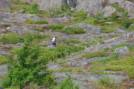 Vanhempi miehistön jäsen kirmaili pitkin kallioita tutkien reittejä ja hakien samalla treeniä tuleviin maratoneihin.