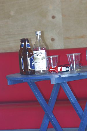 Yhdestä rantakojusta oli ovi hieman raollaan ja mitäpä kojussa sisällä muuta kuin kalastajien taukopaikka....