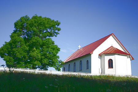 Aspön kirkko rannalta, saunan vierestä kuvattuna.