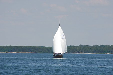 Komeasti virsikirjaa kohti etelää. Takana näkyy Nauvo.