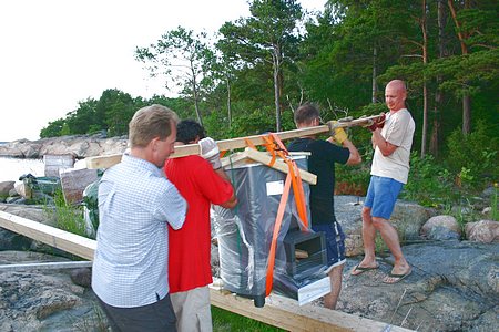 Eipä jäädä lepäilemään, kiuas kantoon ja kivikon yli pusikkoon ja saunan luo.