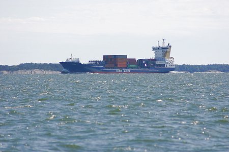 Team Linesin Öland kohti länttä Hangon teollisuussatamista.