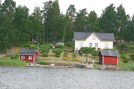 Aika hyvin hoidettu pihapiiri - kesän kuivuus näkyy ruohokentän ruskeudessa, mutta tästä se kyllä vielä vihertyisi varmaan tulevien sateiden myötä.