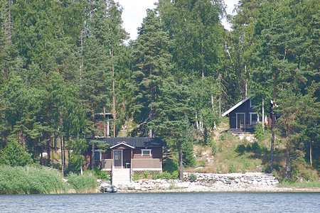 Vaatimattomia mökkejä Barösundissa.