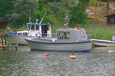 Elisaaren väylän suulla olevan toisen sataman veneitä.