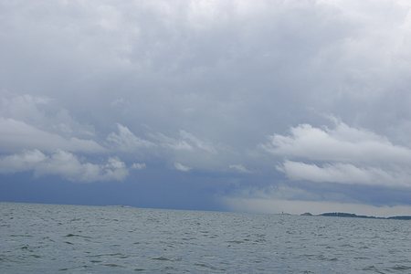 Kesän 2005 purjehduskuvia Tuolla olisimme jos olisimme ulkokautta menneet - ja hyvin märkinä.. Tässä juuri Porkkalan selälle saapumassa - vastatuuli alkoi nousta suhteellisen kovaksi ja aallokko samaisesti - suoraan vastaan meitä.