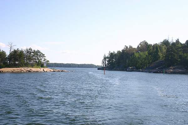 Jollaksen ja Villingin välinen salmi jäi taakse - horisontissa Villasaaret.