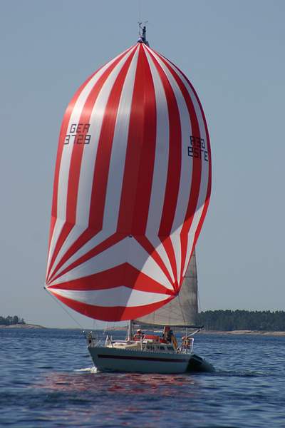 Vastaantulijoilla oli jo kelvollinen tuuli purjehtiakin, tämä naapuri tuli Saksasta asti katsomaan saariston ihmeitä - tai muuten vain tutkimaan rantojamme.