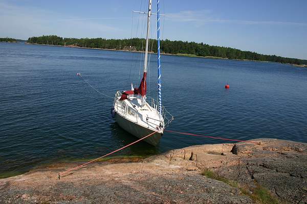 Kesän 2006 purjehduskuvia Byxholmen. Rantautuminen luonnonsatamaan sujui etukäteisarveluistani huolimatta hyvin, rannassa oli juuri saaressa jo olleen toisen veneen miehistö, joka otti vastaan heittämäni köyden. Kiitos heille avusta.